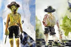 La acuarela es un género socorrido en la ilustración literaria. En este caso transmiten con precisión casi anatómica el regusto que los episodios van dejando en la trastienda del lector; desde el bebé cortado con un serrucho desde la referencia al juicio del rey Salomón a la montaña de cabezas cortadas que el viejo Jim le atribuye a Enrique VIII o el frondoso y húmedo universo fluvial donde pescan los dos héroes de la novela.